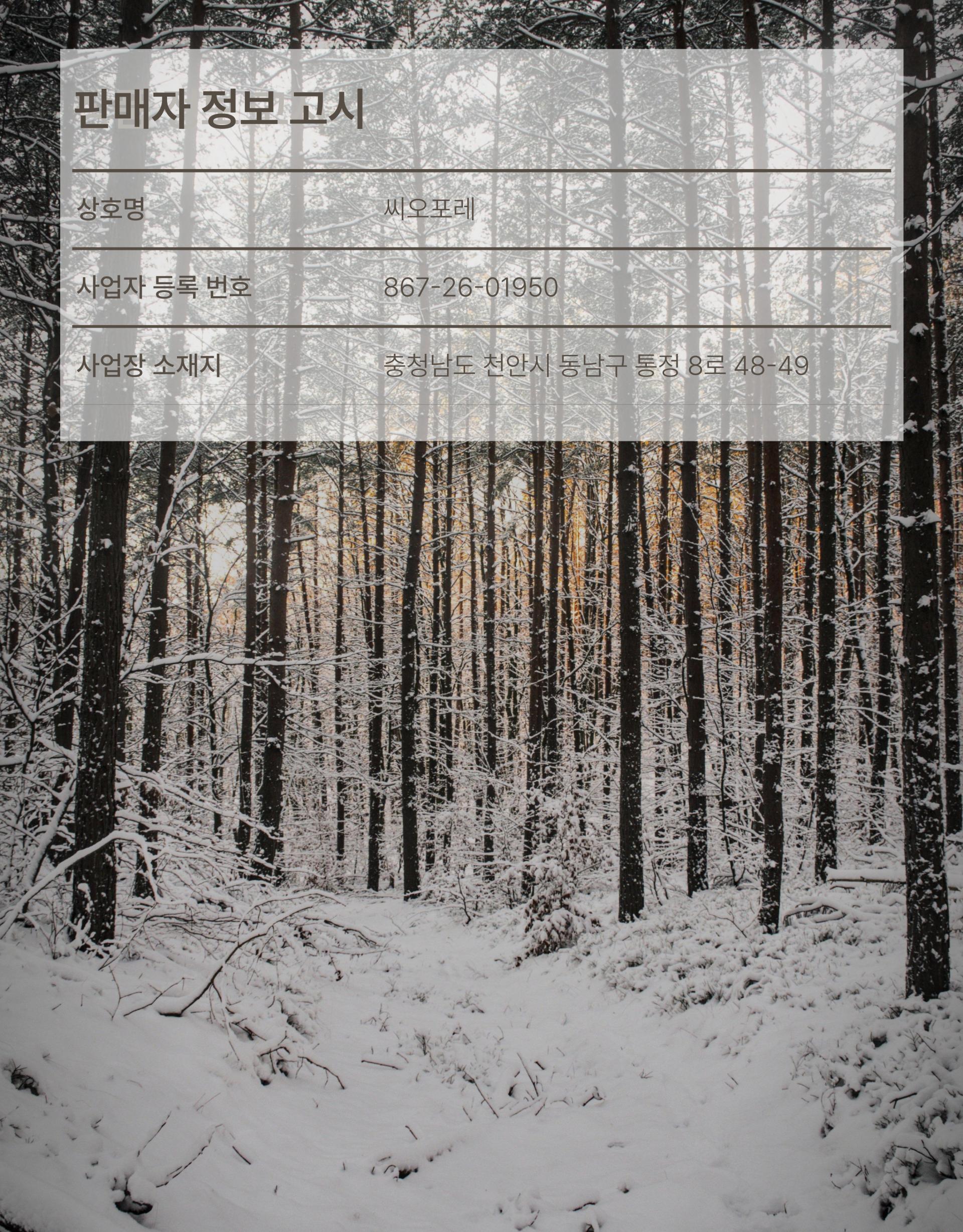 사업자 등록번호 : 867-26-01950 (사업자정보확인) | 통신판매신고번호 : 제 2025년도-충남천안-0818호